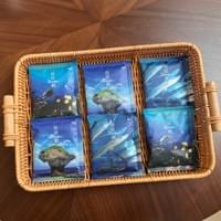 我們為入住的旅人,準備了島嶼主題的濾掛咖啡包。我們將小琉球的海洋元素,融入包裝設計,像是海龜、花瓶岩、潛水員與各種海洋生物。